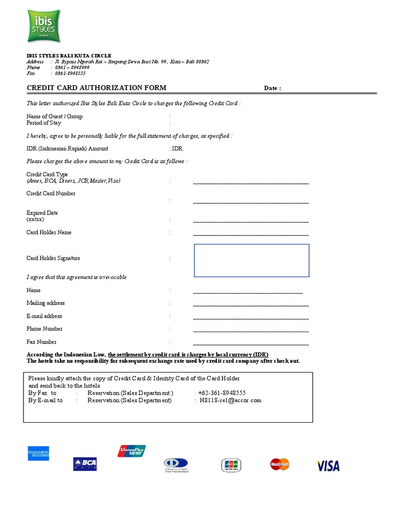 Credit Card Authorization Form Pdf Indonesian Rupiah Credit Card